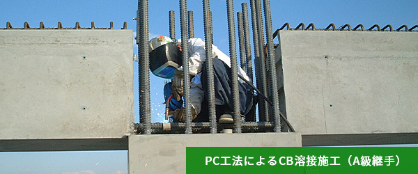 鉄筋突合せ溶接継手工事(1994年~)においては、CB工法、H-SB工法により確かな強度の溶接工事が可能です。